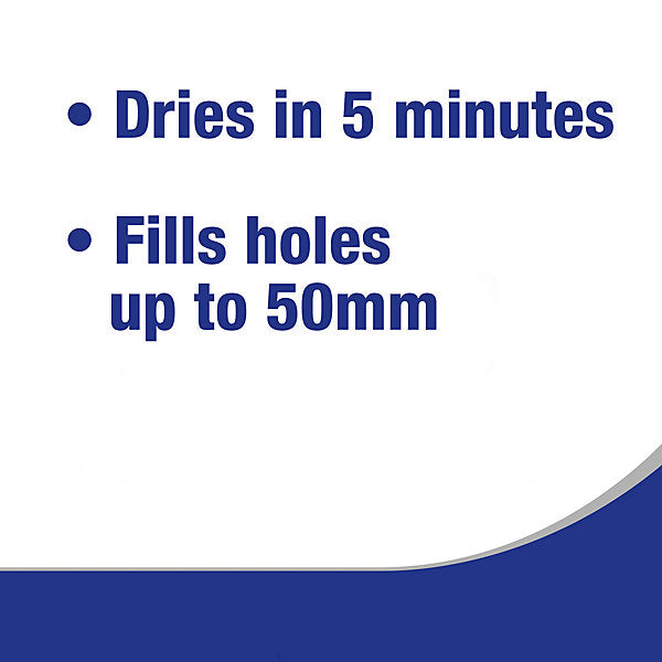 - The formulation will not shrink or sag and has been specially formulated to allow the filling of holes up to 50mm in one go