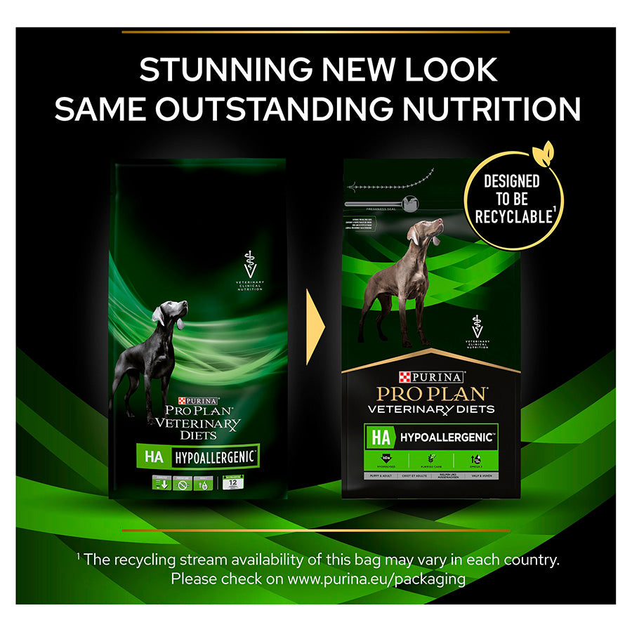 The Purina PRO PLAN Veterinary Diet Canine HA Hypoallergenic is a complete hypoallergenic veterinary diet for the diagnosis and management of food allergies in dogs of all ages, including puppies.