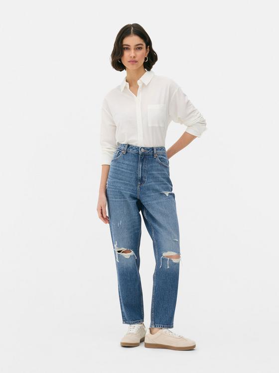 Ripped Denim Mom Jeans