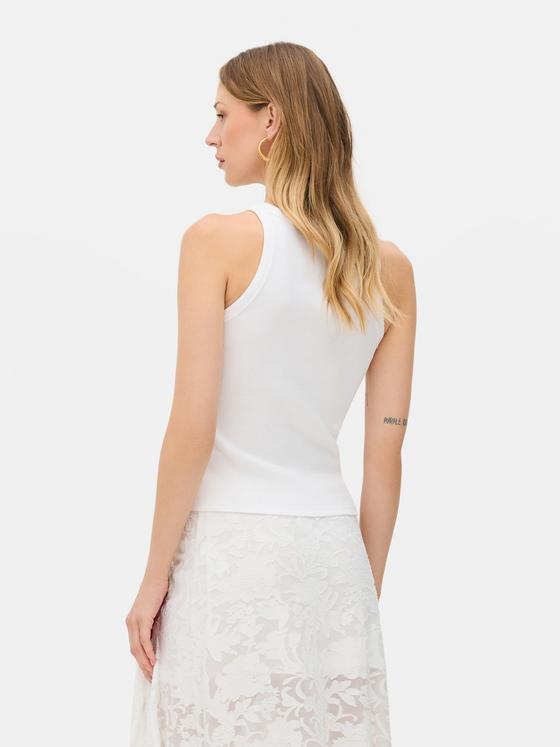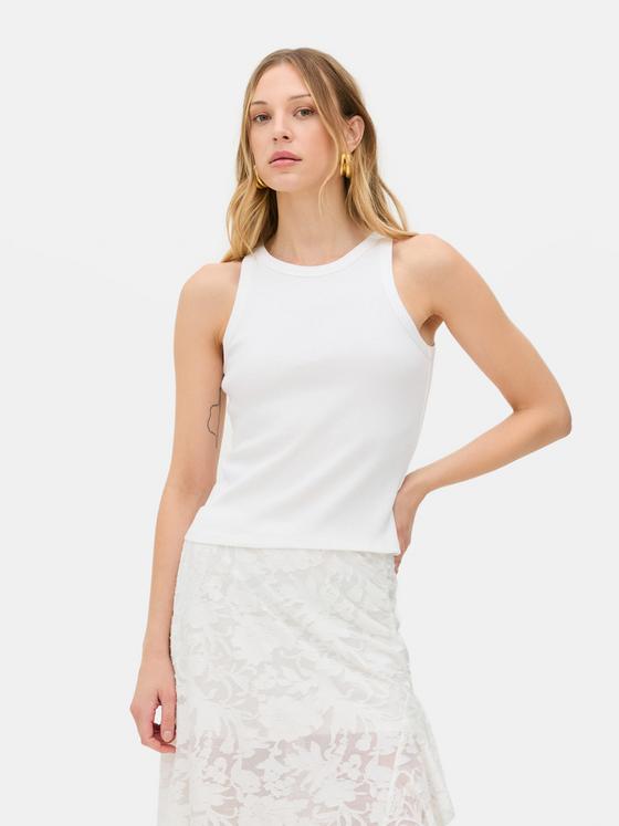 A staple in your new season collection, this white racer vest will keep you looking and feeling cool on warm weather days. In a white colour that's super easy to style, this vest is a versatile pick that can be styled up or dressed down effortlessly. The crisp cotton fabric feels super soft on the skin, meanwhile the slim fit hugs the figure for a form-flattering finish. We love!