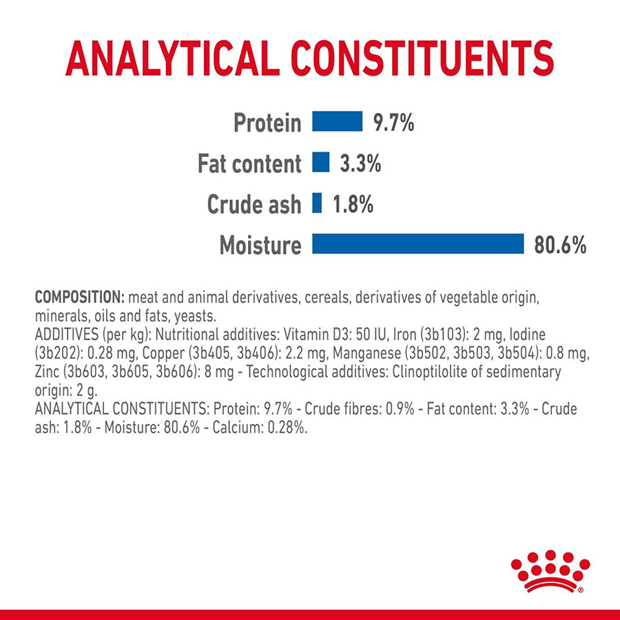 Royal Canin Indoor Sterilised in Gravy is specially formulated with the nutritional needs of your indoor adult cat in mind. Royal Canin Indoor Sterilised in Gravy is specially formulated with specific nutrients that help to support healthy digestive functionality. What's more, this exclusive formula is also designed to help support your adult cat's urinary system for optimal comfort and health. Thanks to this diet's optimal macro nutritional profile - in other words, the protein to fat ratio, even the fussiest of felines can enjoy the excellent palatability of Royal Canin Indoor Sterilised in Gravy.