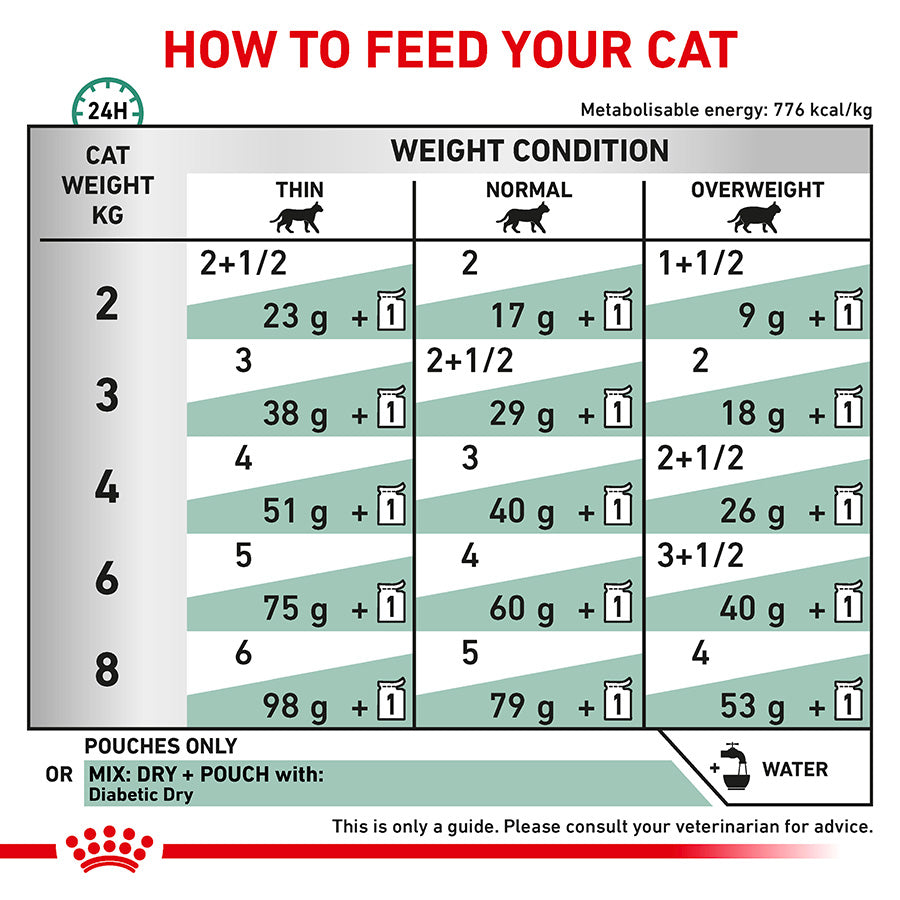 It is very important for cats with Diabetes to have a regular and consistent food intake. If you're considering mixed feeding, it is essential to follow Royal Canin feeding guidelines to ensure your cat gets an accurate amount of both wet and dry food for optimal benefit.