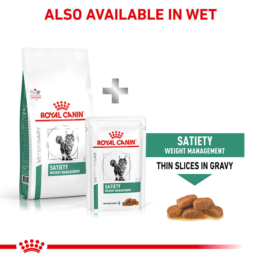 To cater to each cat's individual preferences, Royal Canin Feline Satiety Weight Management is also available as wet food as thin slices in gravy. If you're considering mixed feeding, follow our feeding guidelines to ensure your cat gets an accurate amount of both wet and dry food for optimal benefit. At Royal Canin they're committed to providing nutritional solutions to your pet's needs. All of their products undergo an extensive quality control process in order to guarantee the optimum quality of food, as well as catering to your cat's specific dietary requirements and lifestyle. This means that when your cat eats Royal Canin Feline Satiety Weight Management, it's getting a complete and balanced diet.