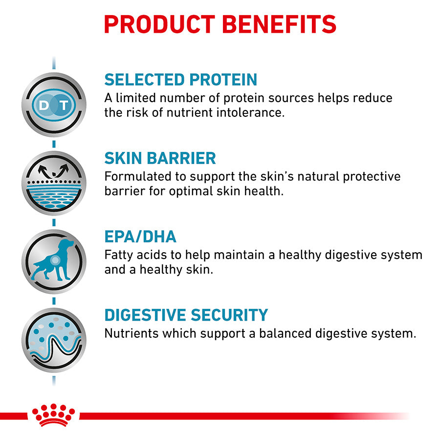 As part of the Royal Canin Veterinary Health Nutrition range, it is important that this product is only fed to your pet when recommended by a veterinary professional. Transitioning your pet from one diet to another should be a smooth and gradual process over a 7-10-day period. Please ensure you follow the correct rationing amount, especially when mix-feeding. To cater to each dog's individual preferences, Royal Canin Sensitivity Control is also available as wet food (loaf-like texture) in two different protein sources: chicken with rice and duck with rice.