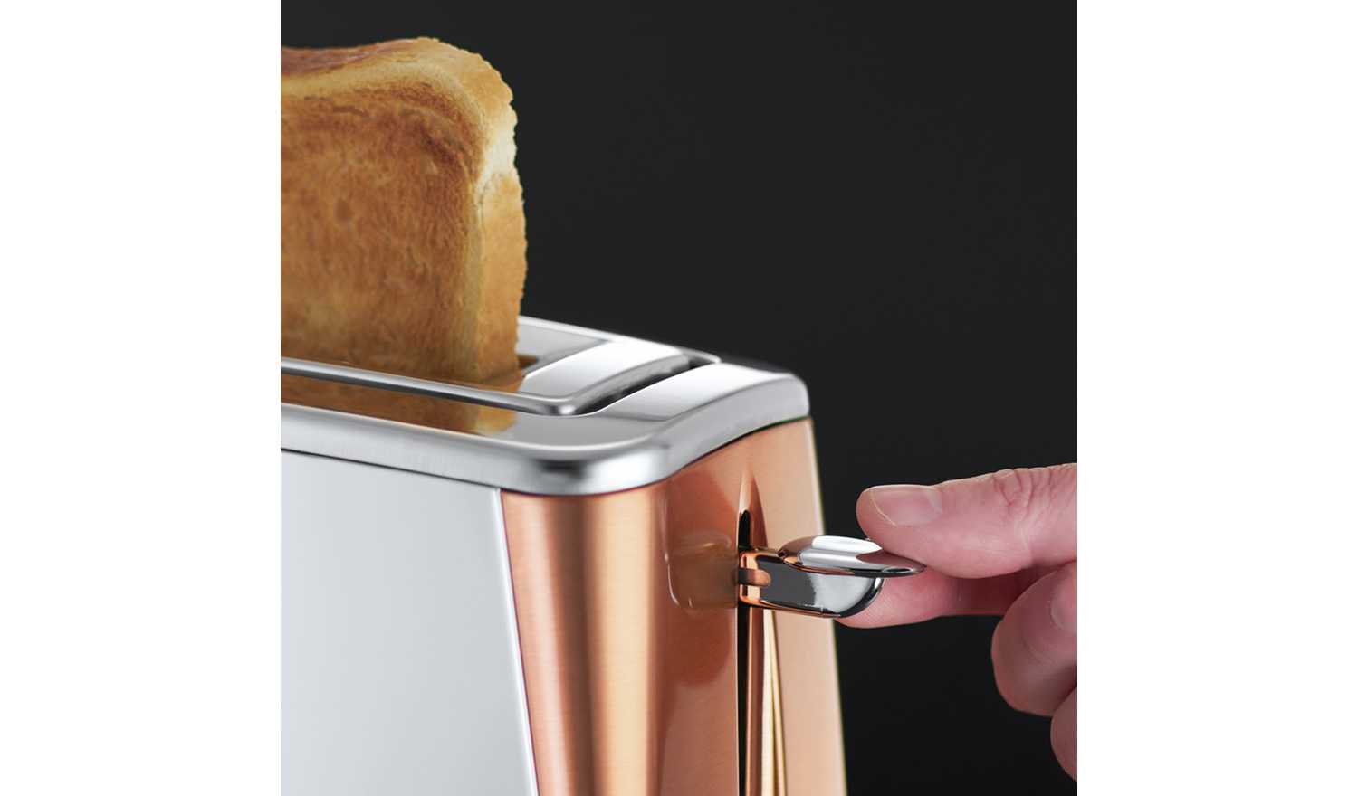 The Luna Copper Toaster is as remarkable in performance as it is in appearance with its extra-long slot. Perfect for those thicker slices cut from crunchy larger loafs or the longer style baguettes that you love. The lift and look feature lets you keep an eye on your toast without having to even cancel the cycle, simply lift the toast upwards to check how brown its looking.
