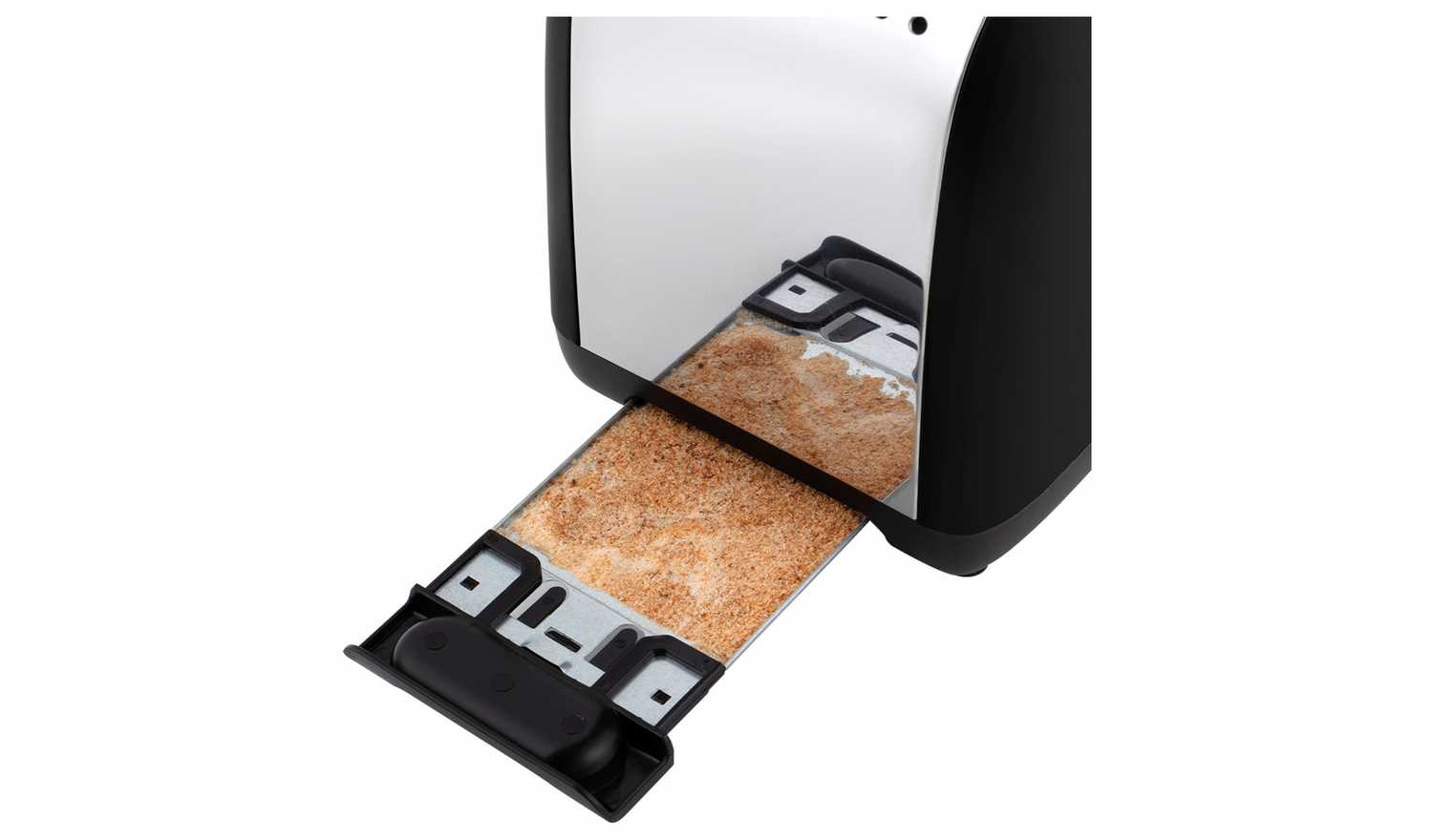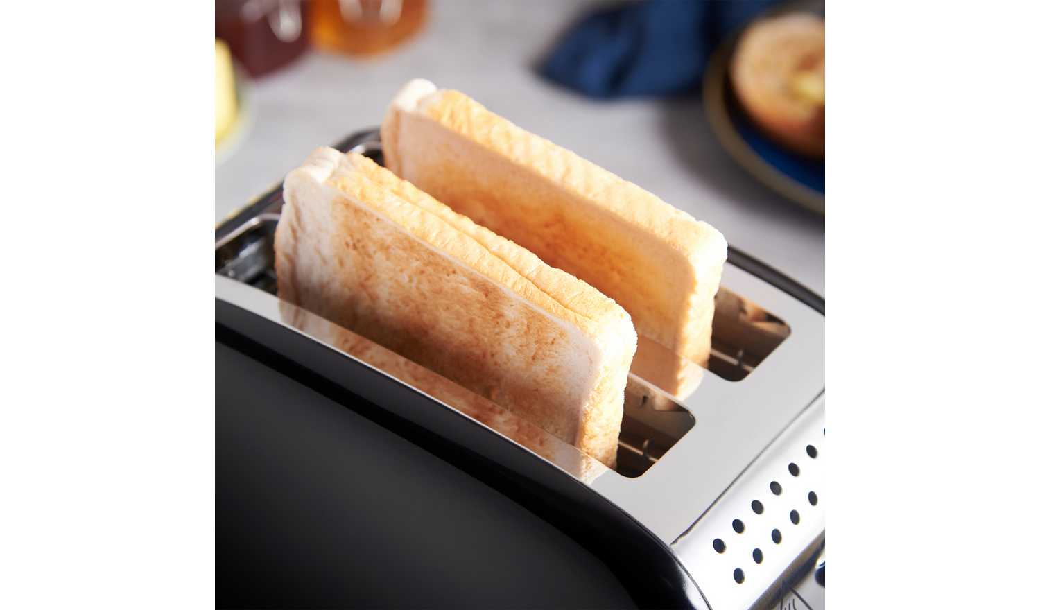 2-Slice toaster with longer slots: This stylish two-slice toaster allows you to evenly toast longer slices of bread, just the way you like it!
