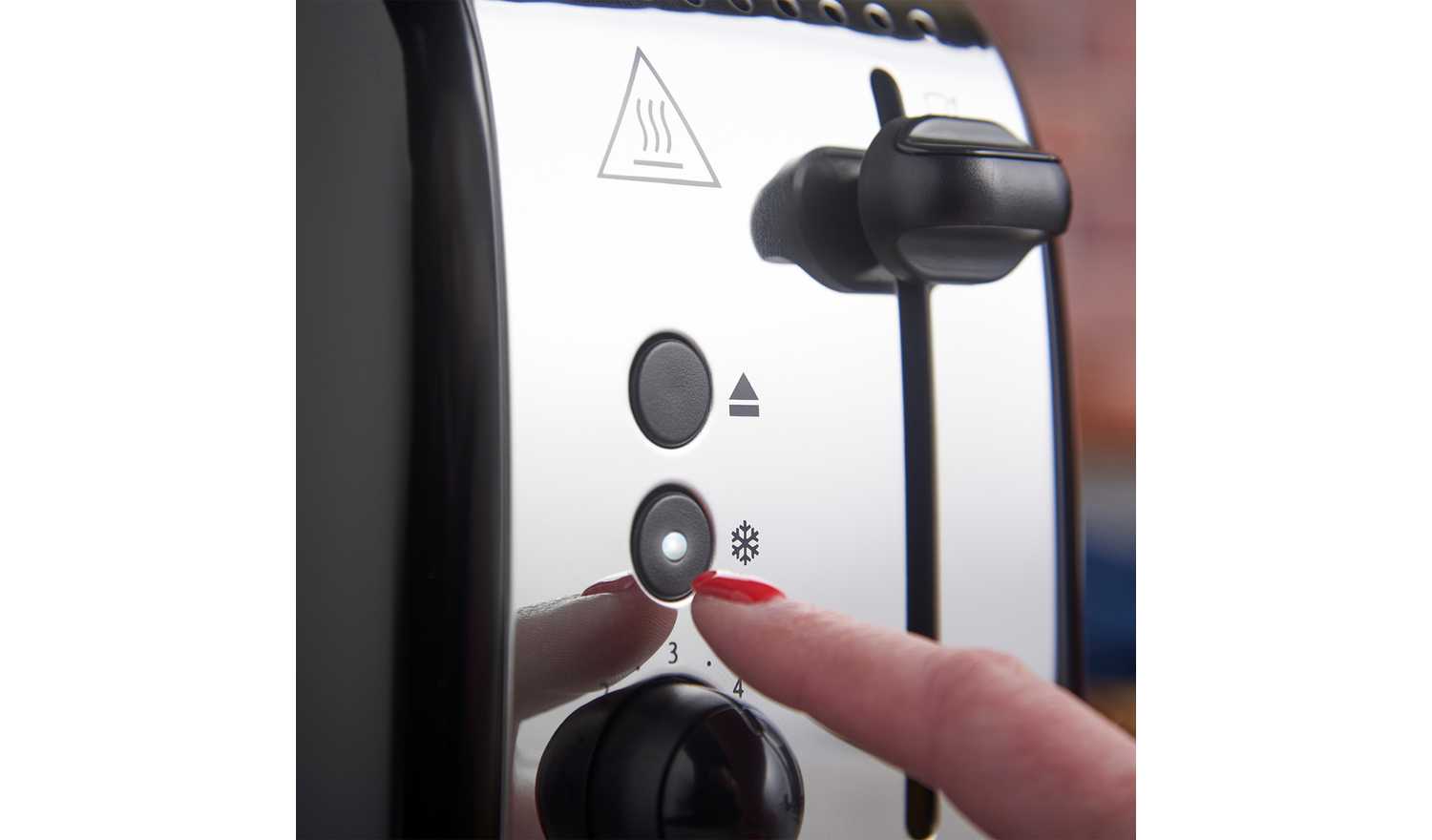 Enjoy the toast you love everyday with the Russell Hobbs Black Colours Plus 2S Toaster. The two extra-long slots allow you to evenly toast longer slices of bread, while the six browning settings put you in control of the colour of your toast, from lightly golden to well done. The lift and look feature is a great way to check on the progress of your toast without stopping the cycle, and you can even toast from frozen, cancel the toasting mid-cycle or reheat toast that's been left to cool.