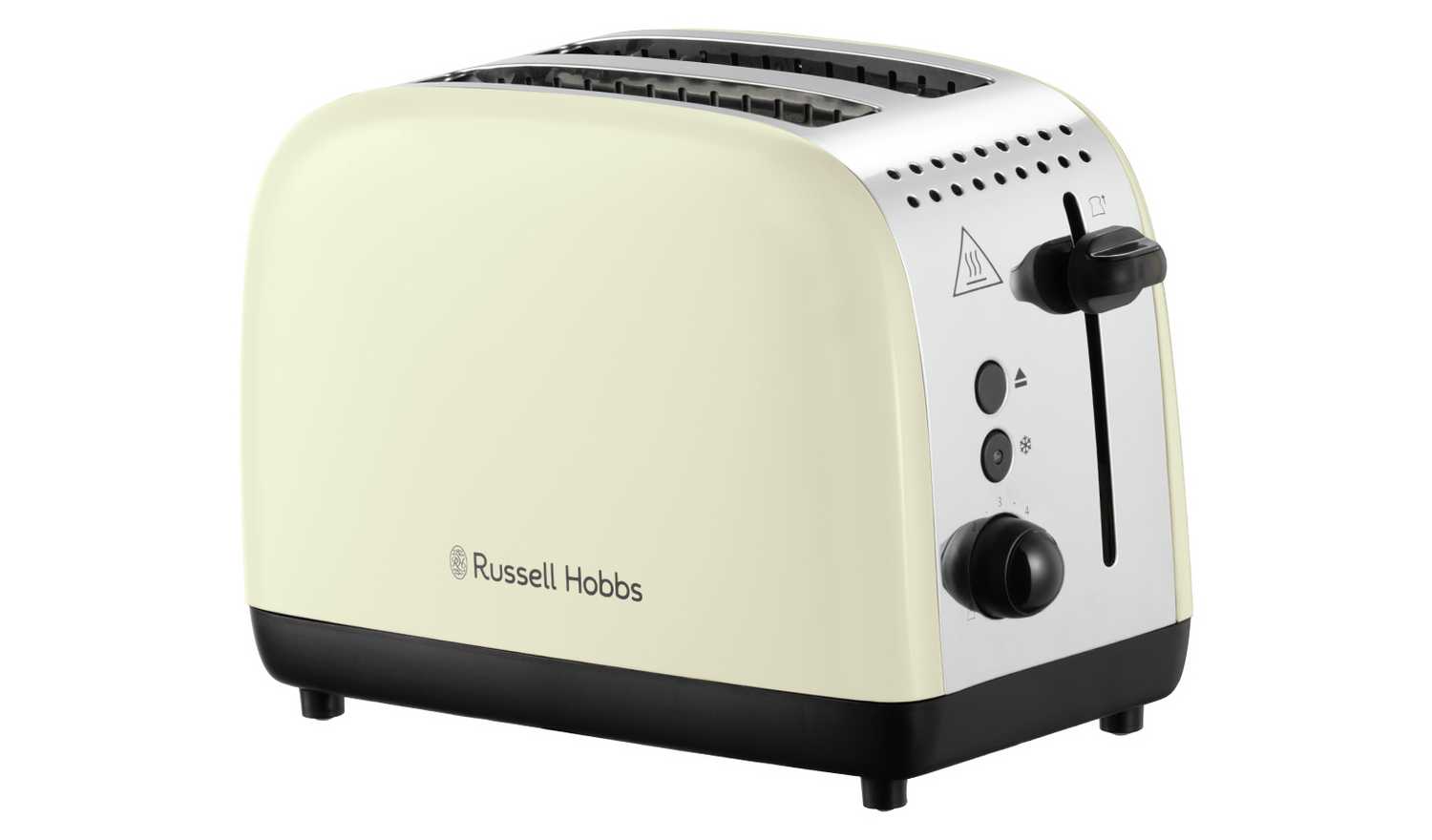 Enjoy the toast you love everyday with the Russell Hobbs Cream Colours Plus 2S Toaster. The two extra-long slots allow you to evenly toast longer slices of bread, while the six browning settings put you in control of the colour of your toast, from lightly golden to well done. The lift and look feature is a great way to check on the progress of your toast without stopping the cycle, and you can even toast from frozen, cancel the toasting mid-cycle or reheat toast that's been left to cool.