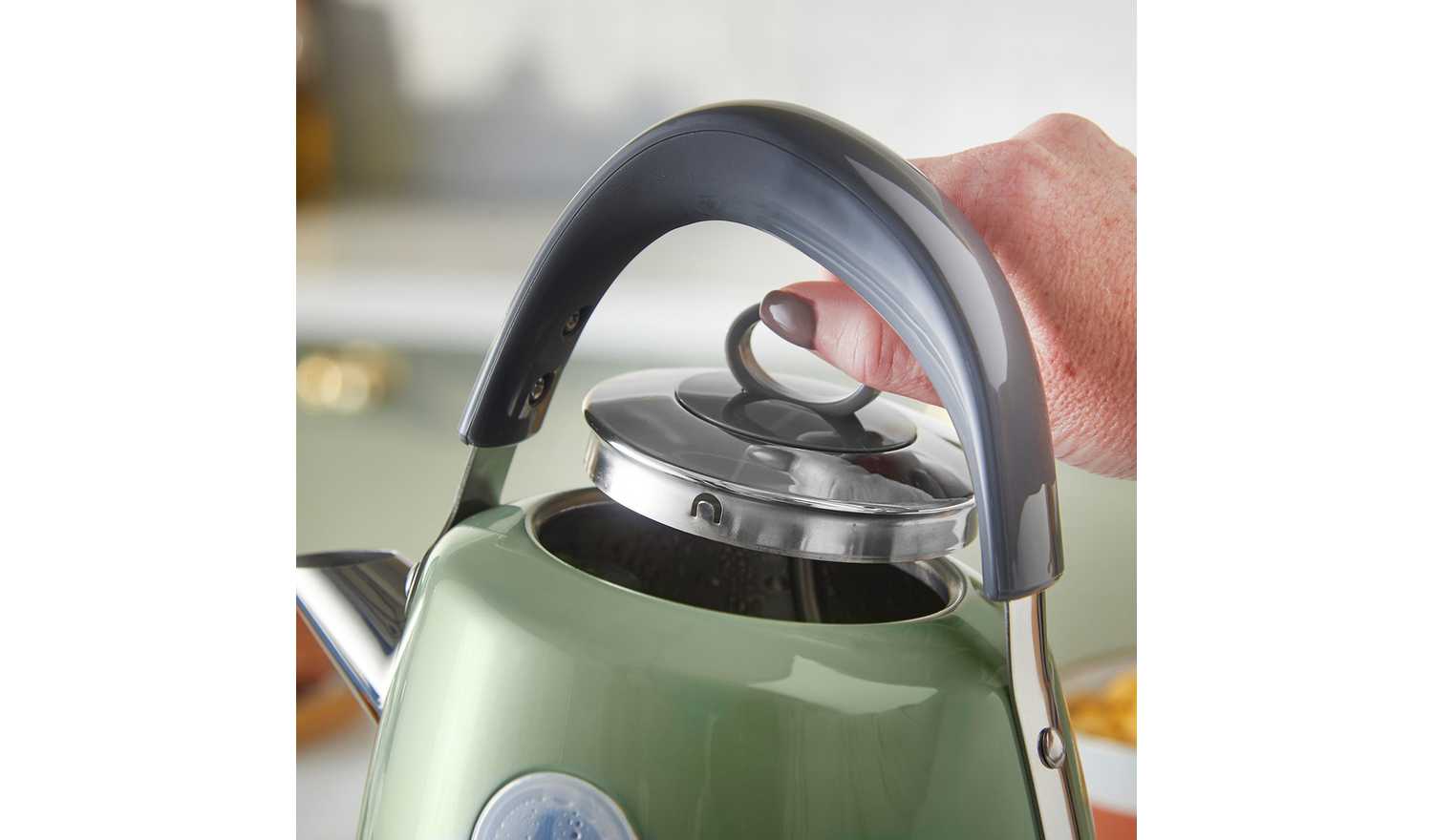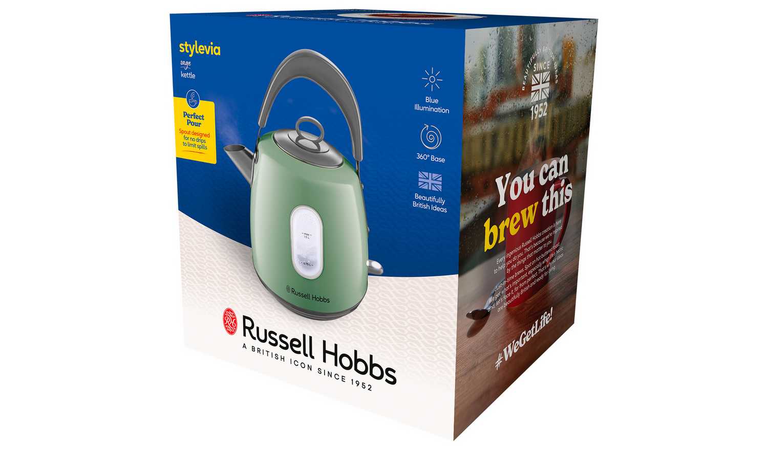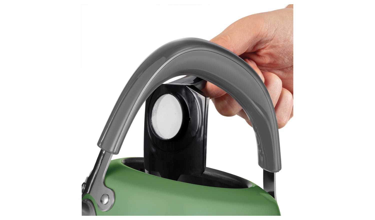 As a beautiful focal point to complement any style of kitchen, the Russell Hobbs Stylevia Sage Kettle is a perfect blend of traditional style with modern functionality. It's delightful sage green exterior with a 1.5L capacity interior lights up in a pleasant white hue when boiling. The water level indicator shows handy cup measures, so you never need to boil more than you need, while the striking up-and-over handle and pull-off lid makes refilling and pouring comfortably easy.