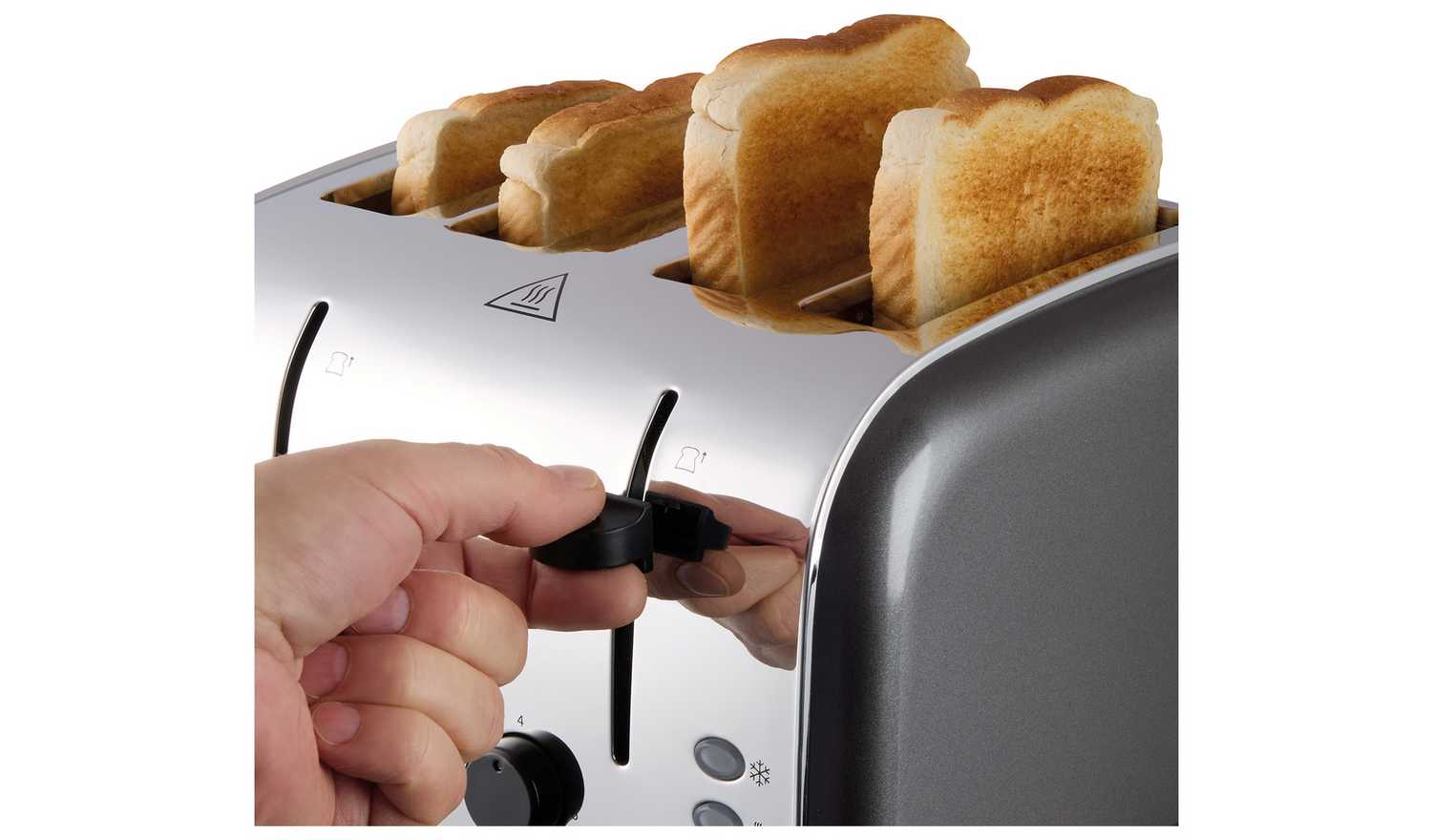Sleek and modern in its design, this 4-slice toaster has a brushed stainless-steel housing and gunmetal side panels, giving it an overall finish that will look smart in any kitchen.