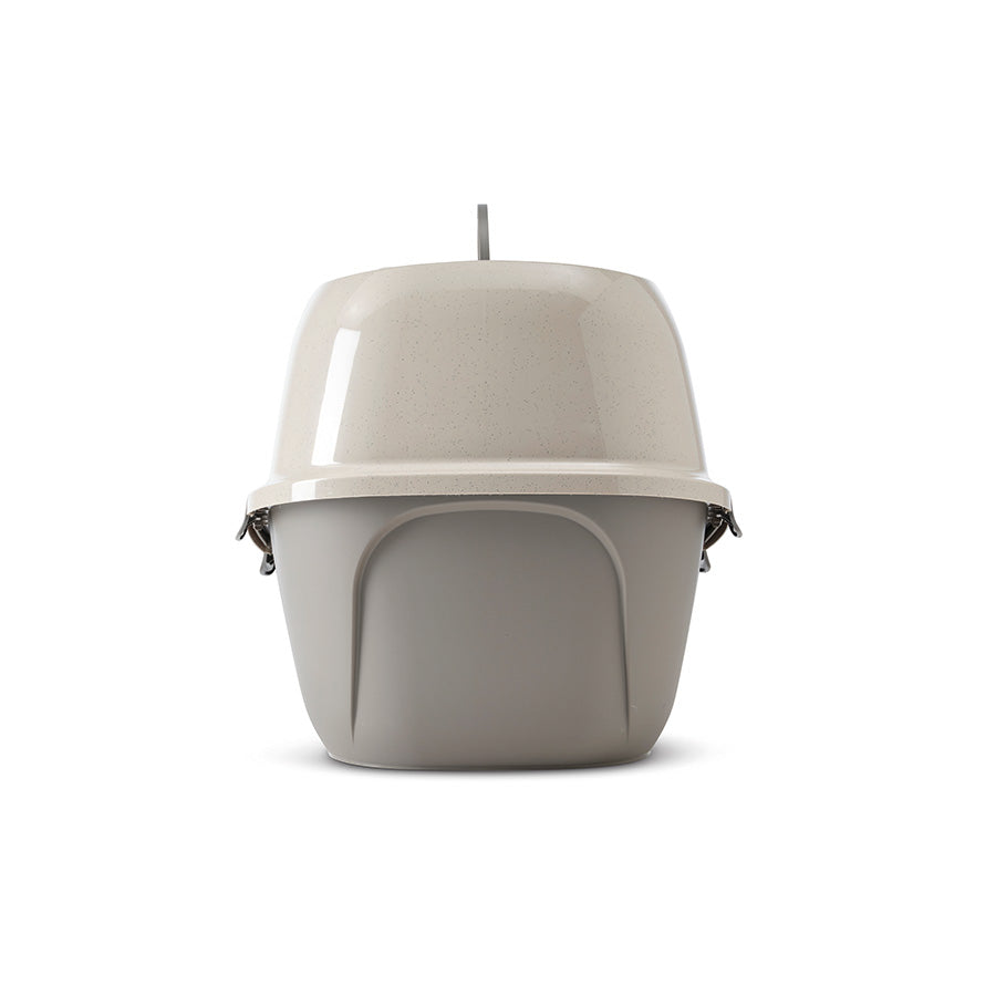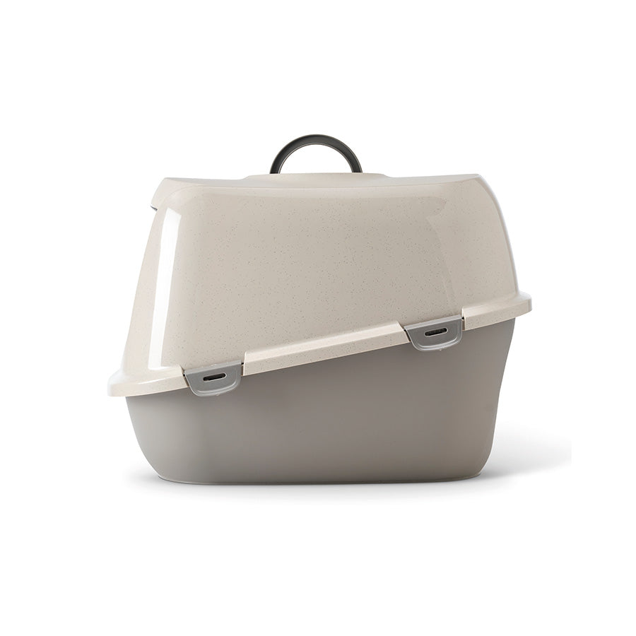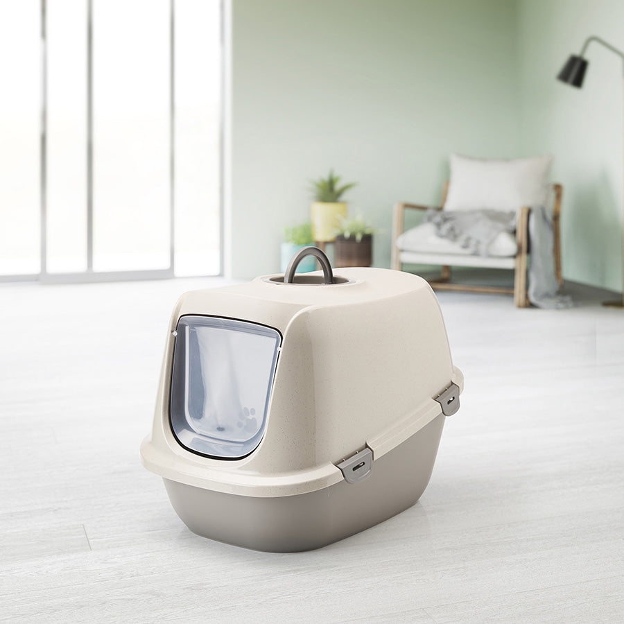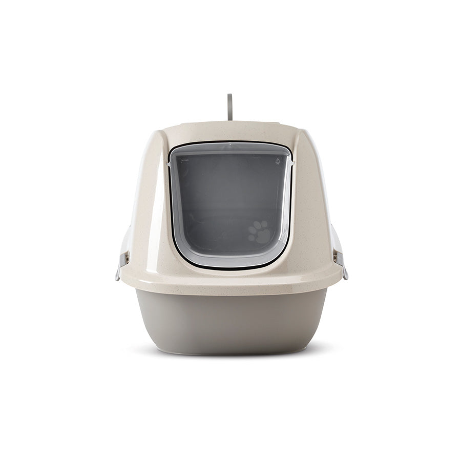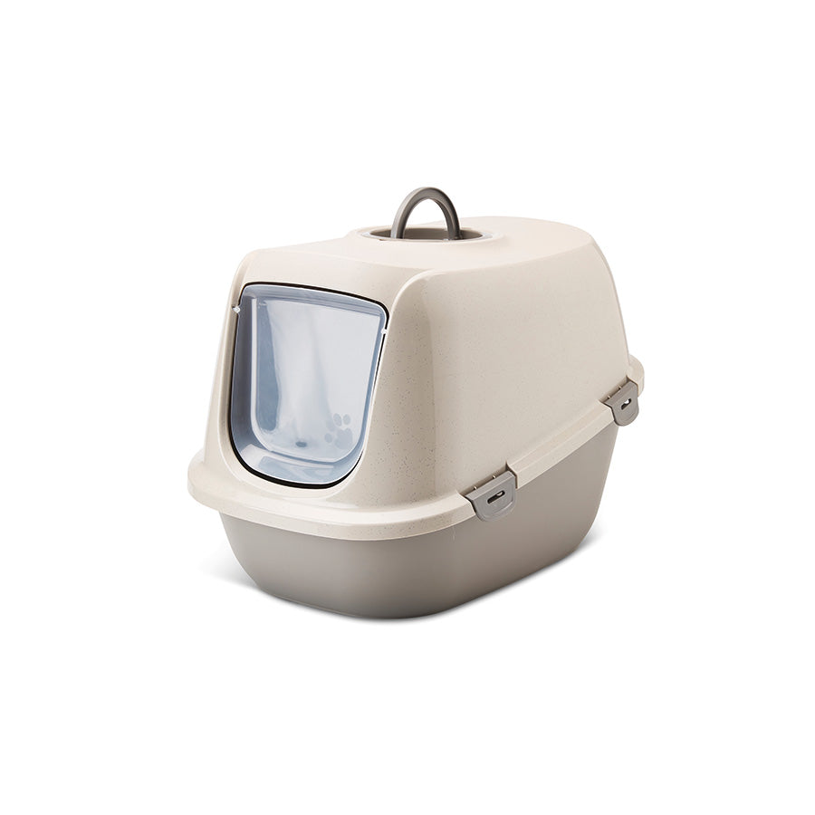 Leo is a large hooded toilet home made from at least 90% post-consumer material and recommended for larger and/or multiple cats. The Leo toilet home has a transparent door, a replaceable filter to get rid of any nasty odours and a handle for easy carring. The hood is fixed to the litter tray with clips that can easily be released for cleaning the tray.