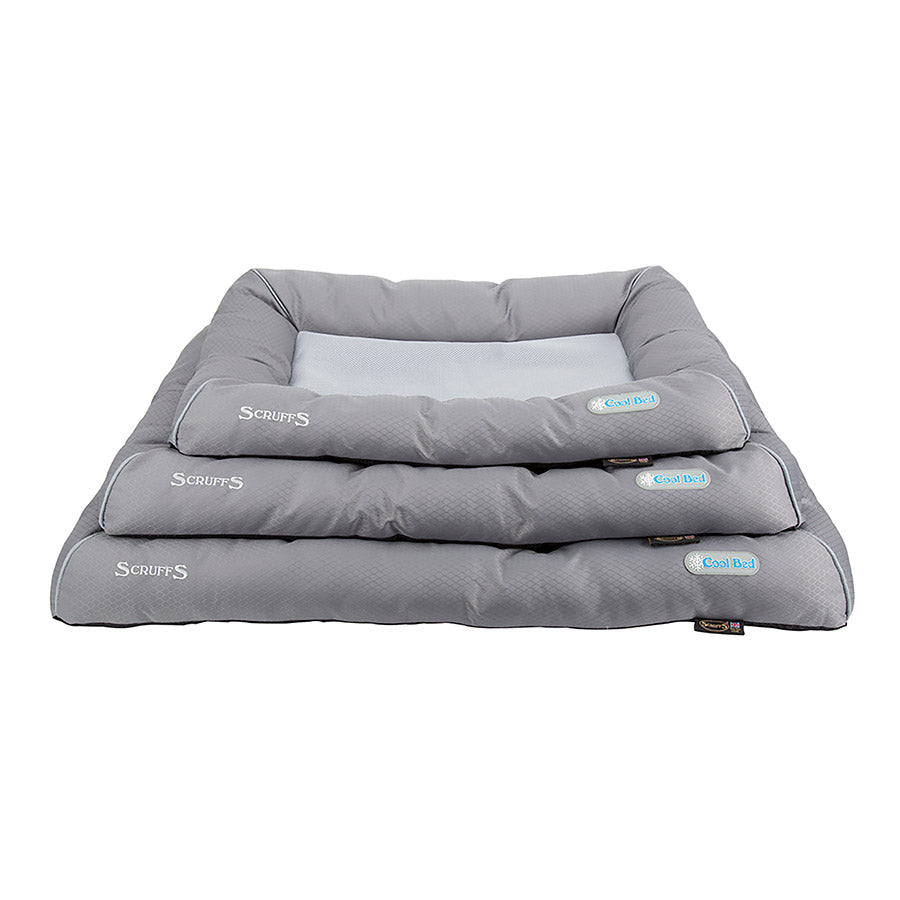 The Scruffs Cool Bed uses a breathable 3D mesh with padded side walls and a non-slip base. Inside the bed is a removable Cooling Mat designed to provide relief in the summer months. Filled with a non-toxic gel, the self cooling mat will be typically 5-10 degrees cooler than room temperature and does not require refrigeration. The outer bed is machine washable and the removable inner cool mat is wipe clean only.