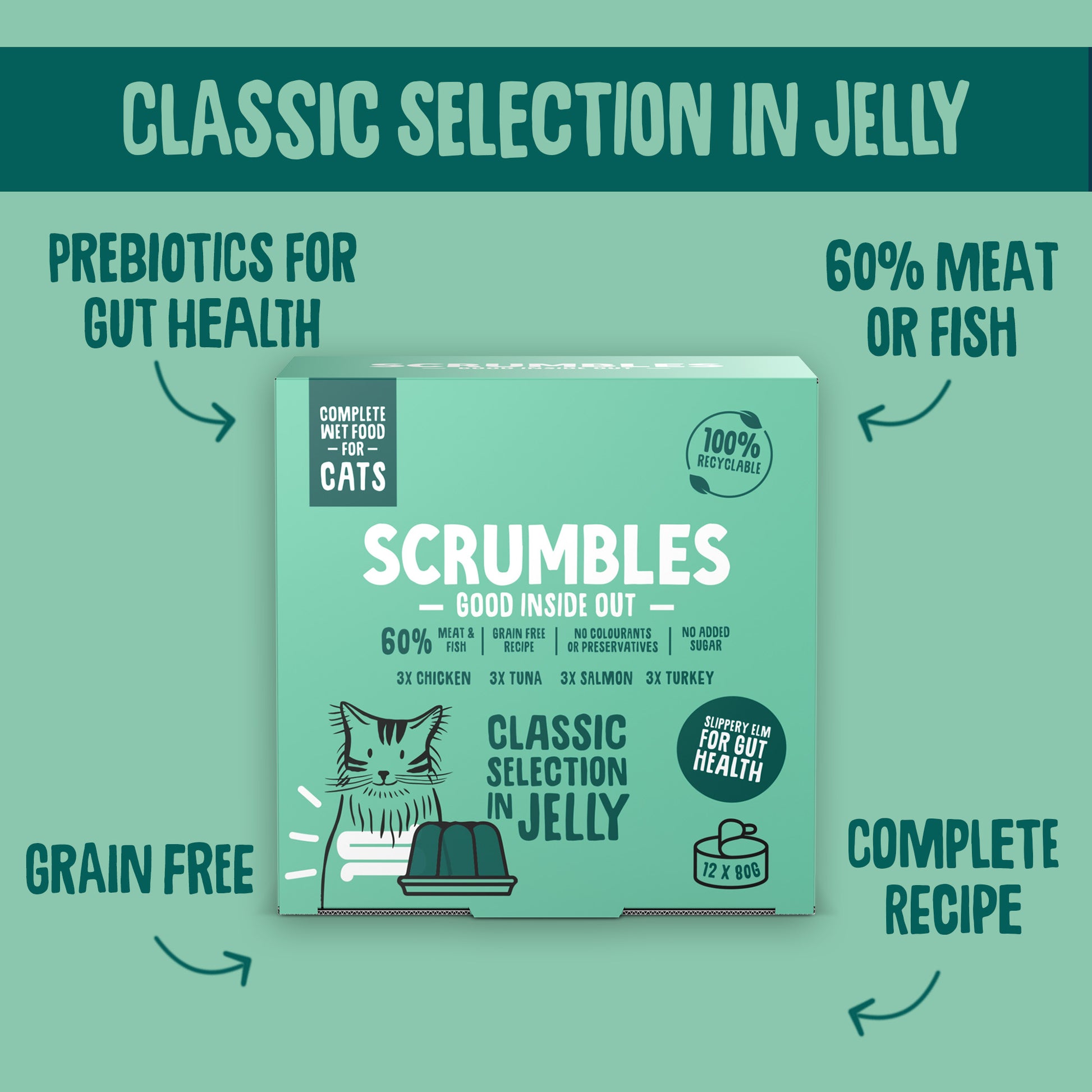 Scrumbles Complete Wet Cat Food Classic Selection in Jelly 12 x 80g Tin