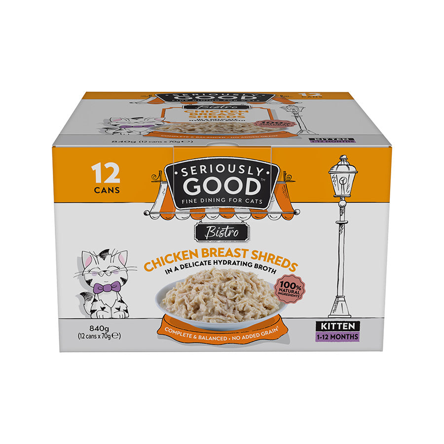 Seriously Good Wet Kitten Food Chicken Breast Shreds 12x70g