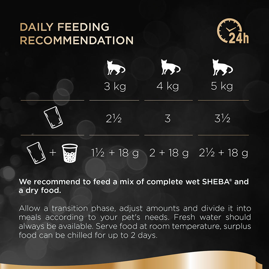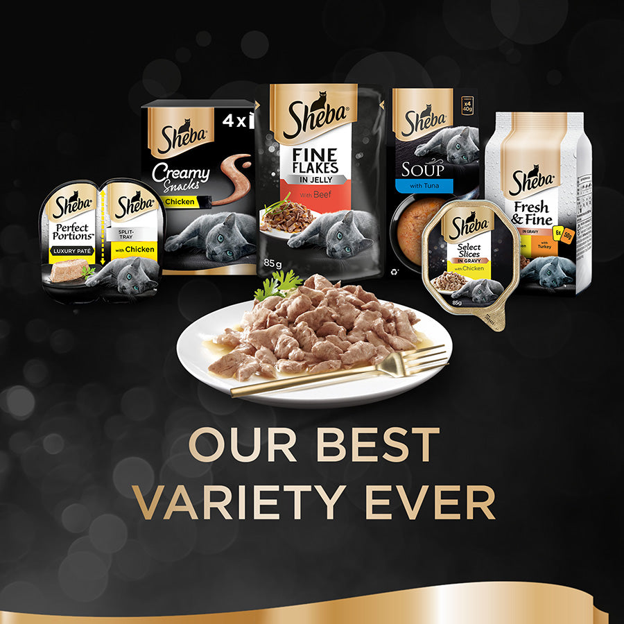 Sheba understands your feline friend's desire for high quality cat food and well-crafted recipes. Thats why Sheba has designed a range of superior cat food and cat treats, with delicious recipes, making feeding your cat a pleasure every time. You'll have them purring and pawing for more.