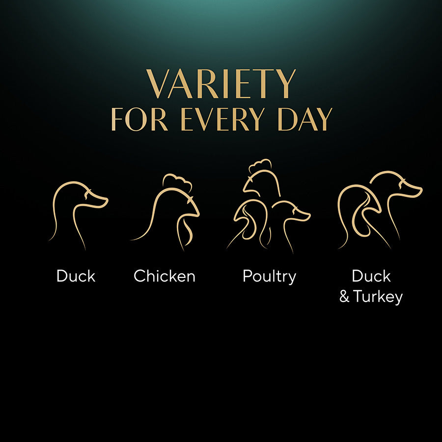 - Adult cat food with a delicious variety of duck and turkey, chicken, duck and poultry in sauce.