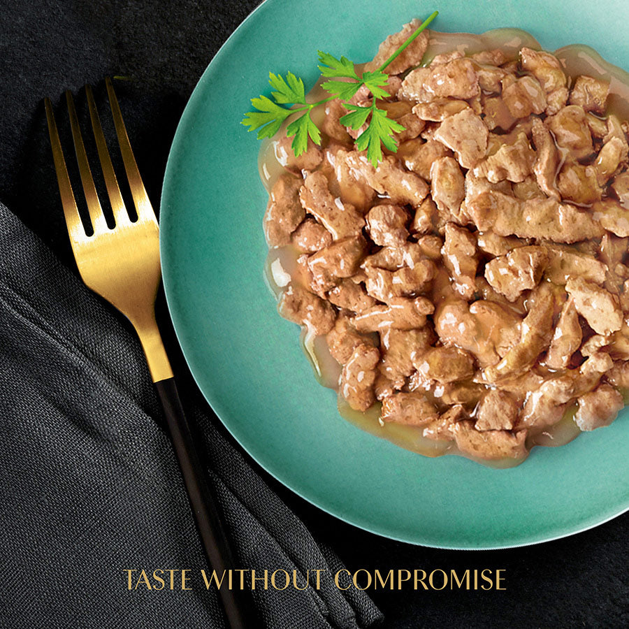 - Cat food in succulent gravy made with natural* and high quality ingredients.