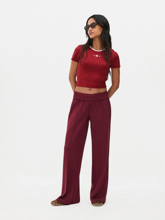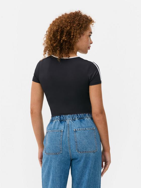 A short-sleeved baby tee featuring a crew neckline, cropped length and printed design