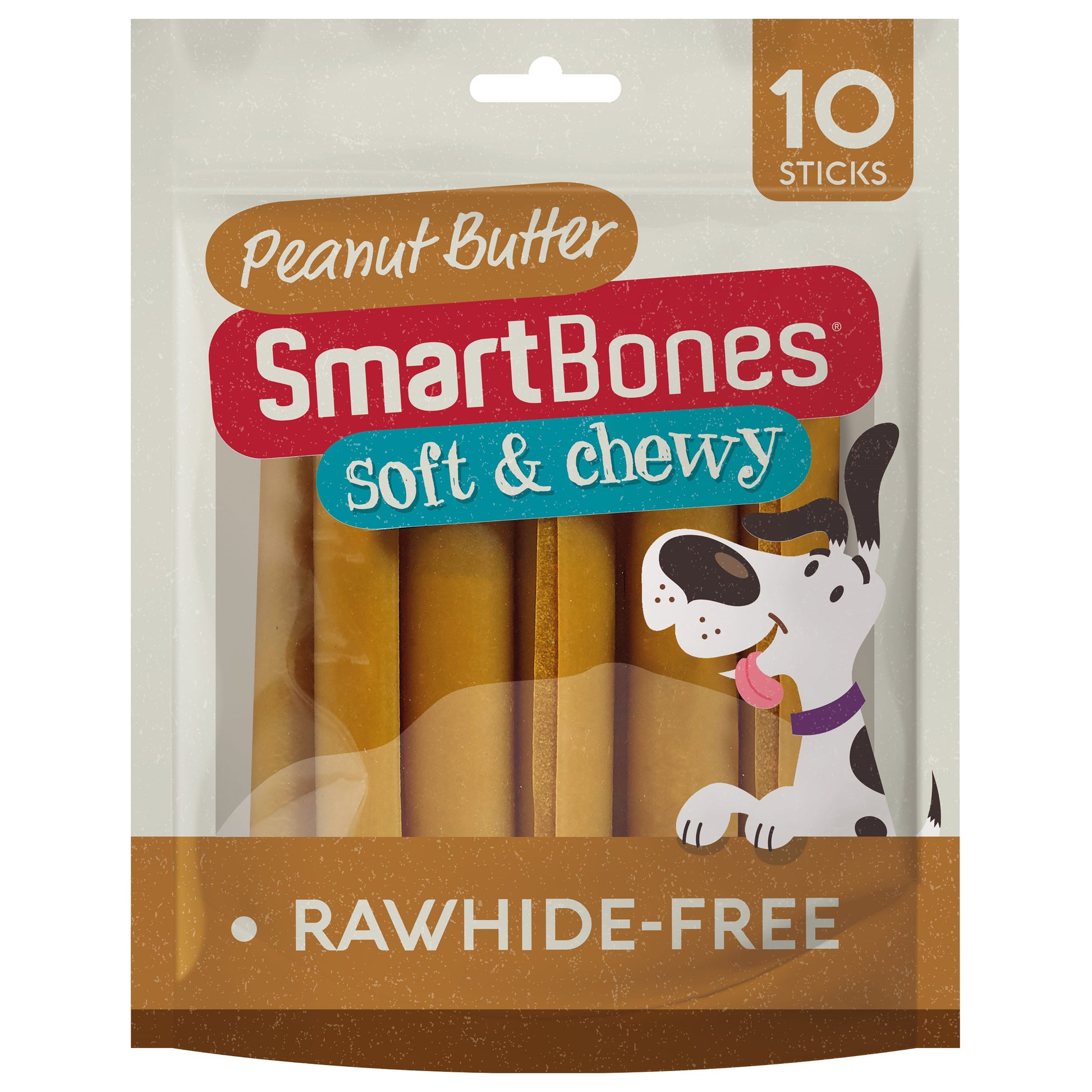 Smartbones Peanut Butter and Chicken Stick Dog Chews have a chewy rawhide-alternative outer layer - made with tasty vegetables such as sweet potatoes, peas and carrots - and an irresistible inner layer with real chicken breast and delicious peanut butter.