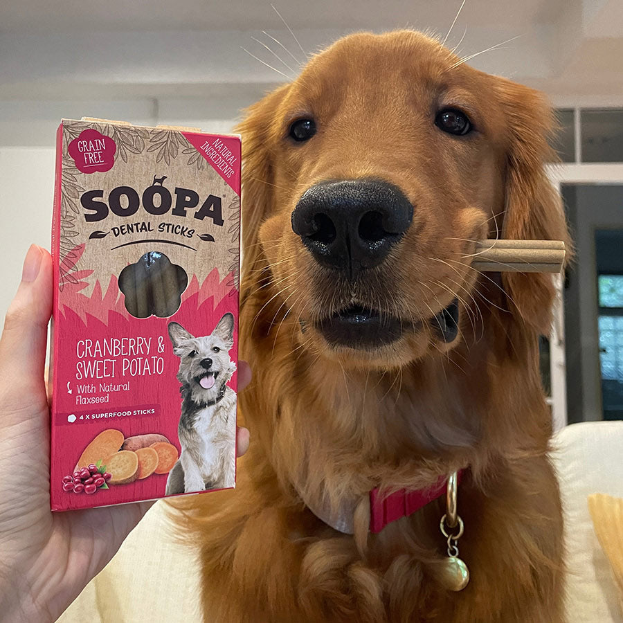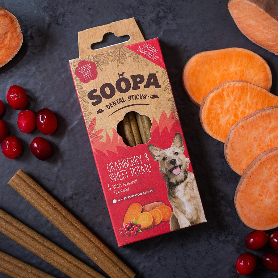 Soopa Dental Sticks Dog Treat Cranberry & Sweet Potato 4 Pack 100g