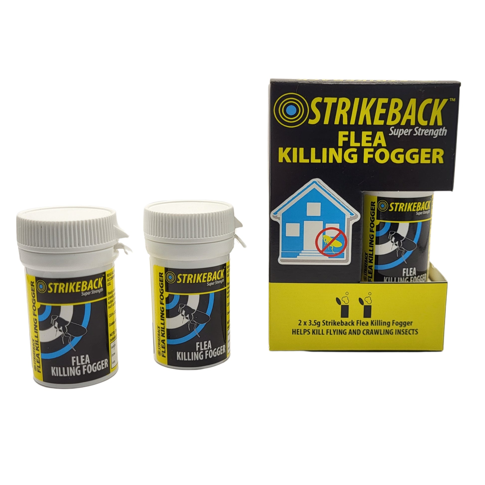 Strikeback Flea Killing Foggers provide a simple solution to achieving immediate, effective, and safe control of fleas within the home. Strikeback Flea Killing Foggers offer a highly effective method of rapid control of fleas. Particularly helpful for accessing hard to reach areas.