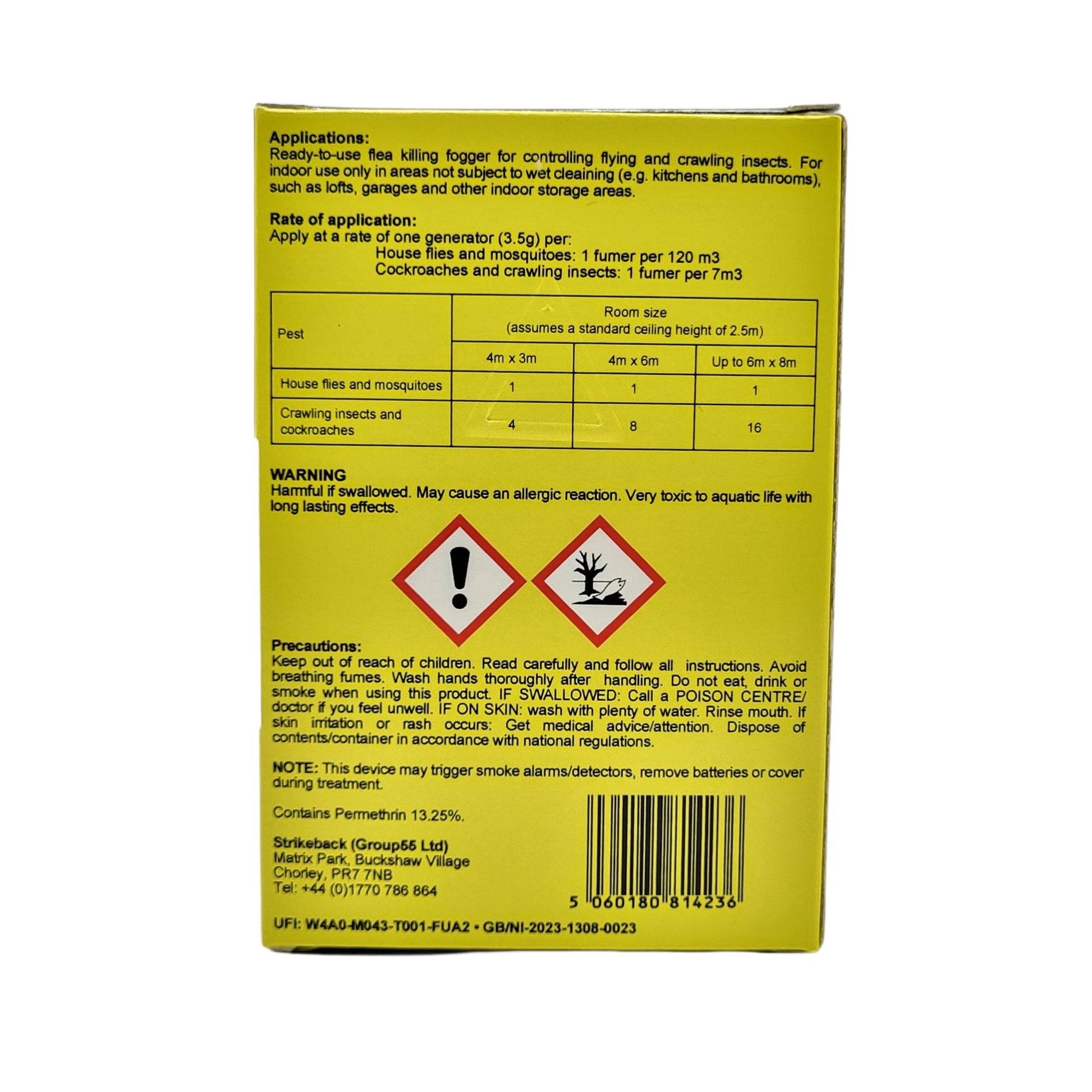 Ready-to-use flea killing fogger for controlling flying and crawling insects. For indoor use only in areas not subject to wet cleaning (e. g. kitchens and bathrooms), such as lofts, garages and other indoor storage areas