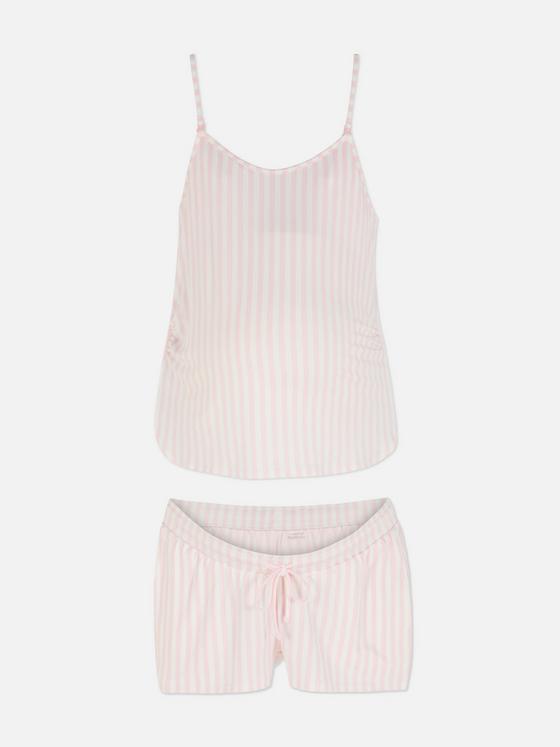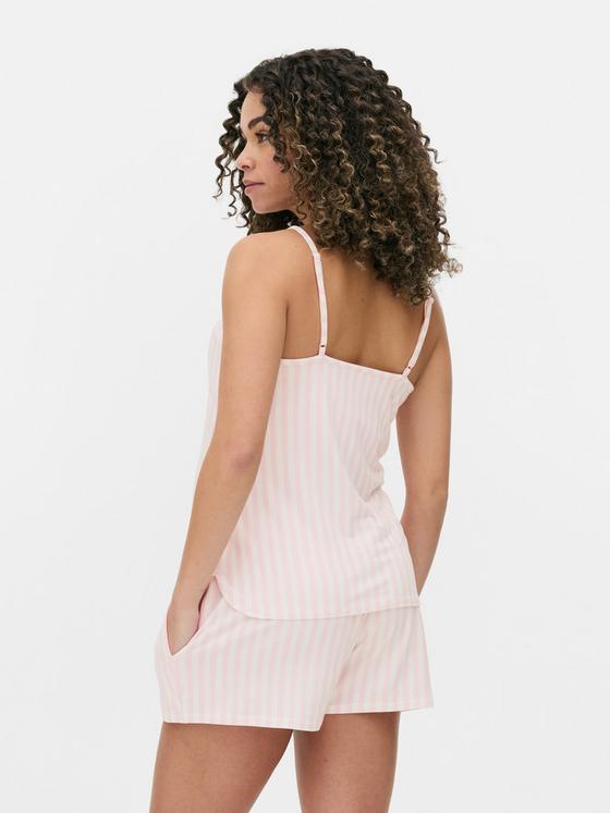 A pair of striped pyjamas featuring a V-neck cami and elasticated shorts