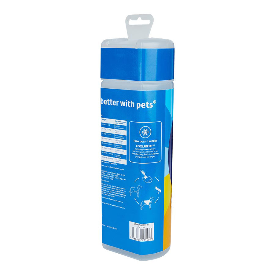 The vest around, nothing quite like it to cool you down! Protect against the sun and the heat with the Elastofit Cooling Vest. Simply soak, squeeze and go with the breeze for your dog to stay cool for up to 6 hours. Its the ultimate lightweight, ice-cooling vest that gives your dog a feeling of long-lasting comfort on hot days or on the go.