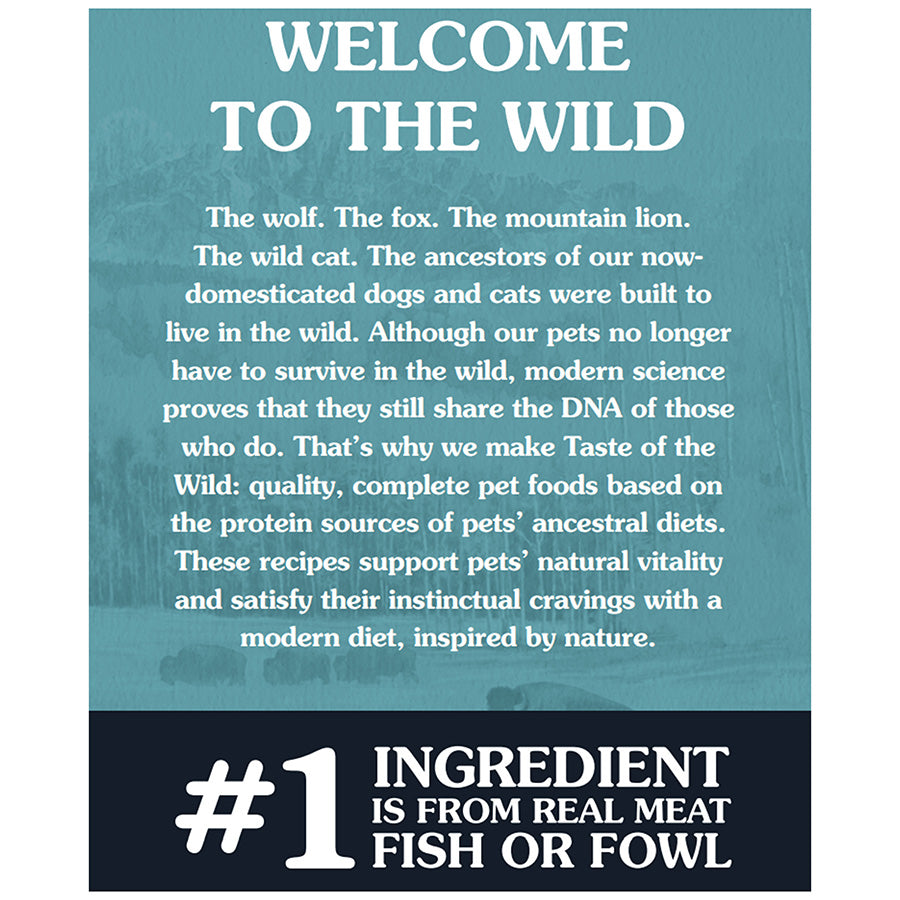 Taste of the Wild dog food offers pets a diet dictated by their genes. It provides pets with the kind of natural, balanced diet that they could find "in the wild". Made from real roasted meats and supplemented with fruits and vegetables, these grain free formulas provide a superior taste sensation, highly digestible energy and antioxidants to support a healthy immune system and overall health.
