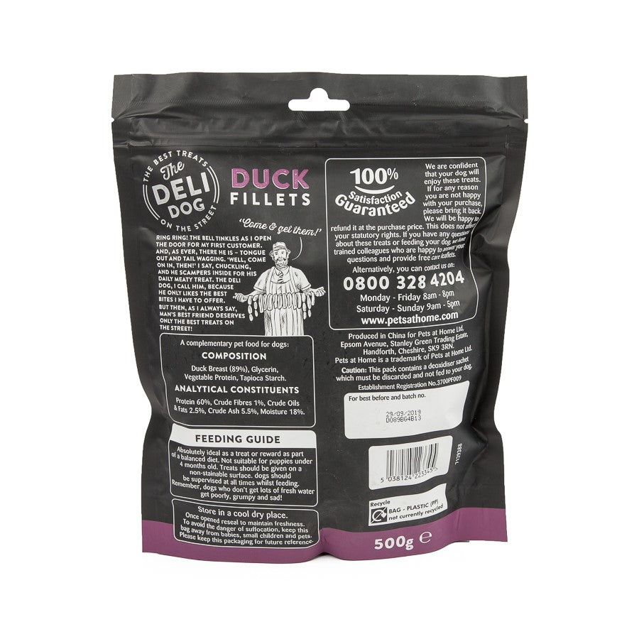 The Deli Dog Duck Fillet dog treats are made from real chicken to create a delicious and nutritious snack for your furry friend. Made with no artificial colours or flavours and is made with 90% chicken. This makes this not only super tasty but also a meaty treat for your dog.