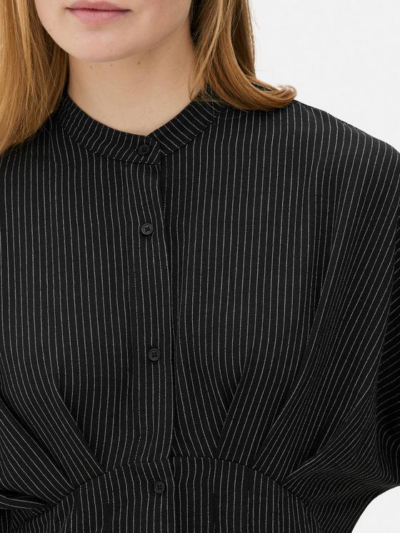 A midi shirt dress with a high neckline, button-front fastening and cropped sleeves