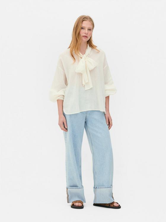 Elevate your wardrobe with The Edit pussybow blouse, a timeless piece with effortless elegance. Made from a lightweight, floaty fabric, it drapes beautifully for a sophisticated silhouette. The statement neck tie adds a chic touch, while the long sleeves create a polished finish. Perfect for work or weekend styling, pair it with tailored trousers for a sleek office look or tuck it into jeans for an elevated casual vibe.