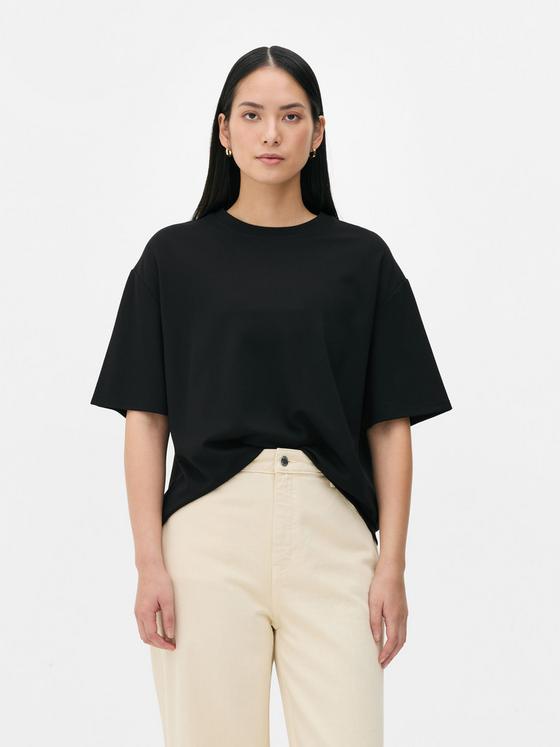 This T-shirt is made from a soft woven blend and features short sleeves and classic crew neckline