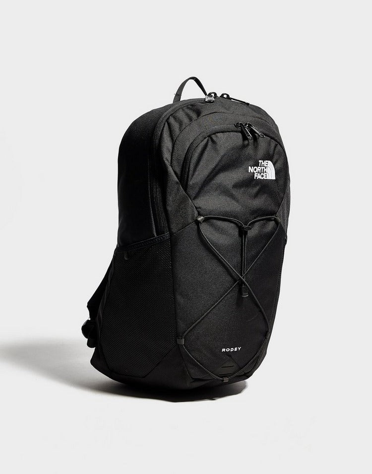 PLEASE NOTE NEXT DAY DELIVERY IS NOT AVAILABLE ON PERSONALISED PRODUCTS. This versatile Rodey backpack from The North Face is the only bag for your next urban adventure. Built to keep gadgets safe, the backpack is equipped with an internal laptop sleeve, while a spacious main compartment offers room for valuables on the go. Made from durable poly fabric in a black colourway, it's finished with side mesh pockets, adjustable backpack straps and signature The North Face branding embroidered to the front. (H: 50 x W: 28 x D: 17cm)