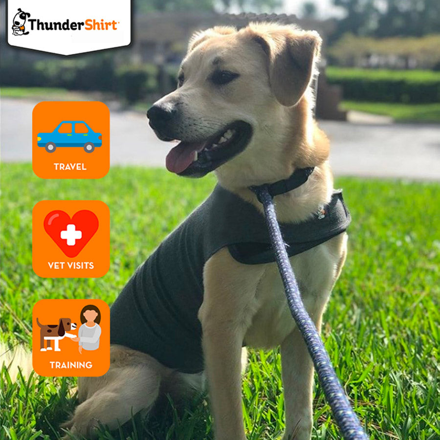 ThunderShirt is an amazing wrap coat that provides an innovative way to calm dogs thanks to a gentle and constant pressure applied to the body of your dog. Many dogs suffer from anxiety and the idea behind the ThunderShirt, a unique patented design calming wrap, is that it works just like swaddling a baby or using a weighted blanket. The pressure applied to your dog's body will reduce stress. Wrap your dog with Love! ThunderShirt is No. 1 in the US and is now available in Europe. ThunderShirt has been praised by owners and professionals when used for many reasons such as:- Stress-related barking- Loud noises; thunderstorms, fireworks, outdoor noises (e. g, traffic)- Dogs staying home alone- Travelling- Visits to the vets- Training sessions and many more! ThunderShirt can be used with the Adaptil range of products, experts in dog well-being.