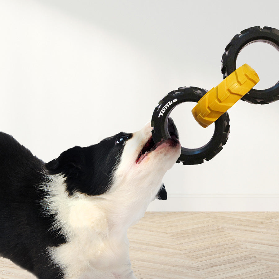 A full range of Tonka-inspired and licensed canine retrieving toys. Tonka toys include Optimised design and function by introducing special materials for improved durability and performance. Tonka Dog Toys forge the strength of real road-ready tires into some of the toughest toys for you and your dog to play with. With its striking yellow and black colour combination, there's no mistaking what it is. and who it's from. With dog toys built to last, you'll know that it's Tonka TOUGH.