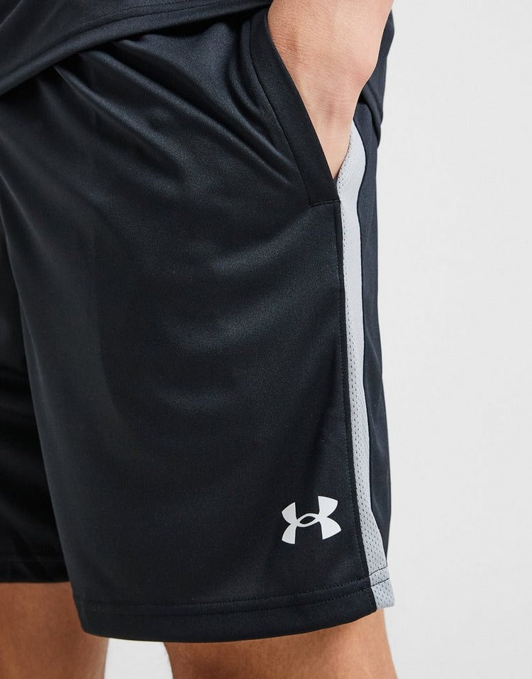 Exclusive to JD. Smash your fitness goals with these men's Challenger Shorts from Under Armour. In a Black colourway with Steel accents, these shorts are cut from a smooth, lightweight knit fabric for total comfort as you put in the work. They feature an elasticated waistband with a drawcord to adjust the fit, while the mesh side panels and sweat-wicking tech keeps you feelin' cool. Finished up with the signature Under Armour logo to the thigh. Machine washable. | Our model is 6'1" and wears a size M.