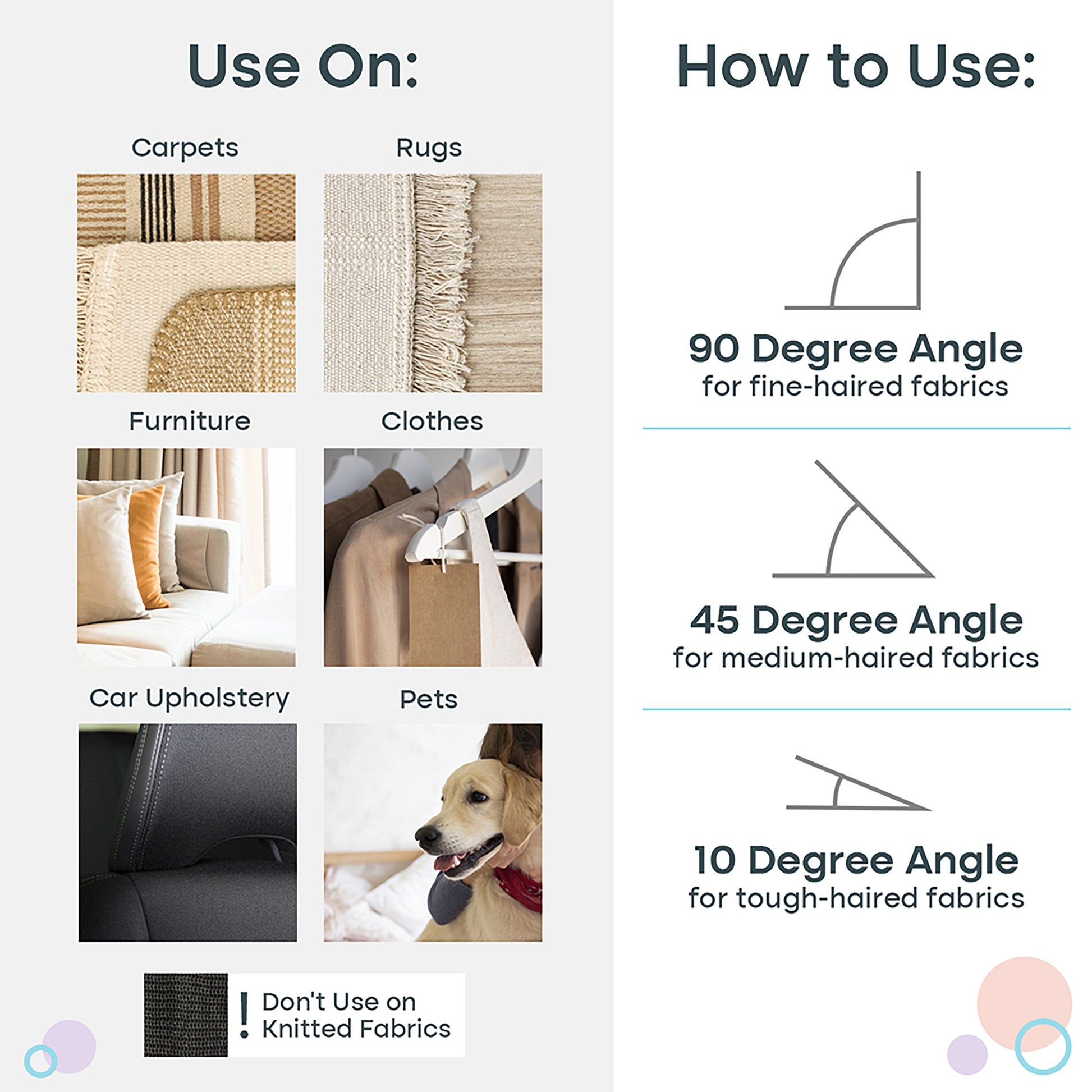 - Multi-fabric functionality - Safely removes pet hair from a variety of surfaces like furniture, carpets, and clothing without damage
