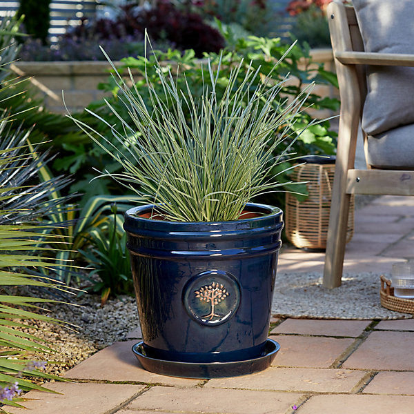 Verve Navy Blue Ceramic Plant pot (Dia) 32cm, (H)30cm