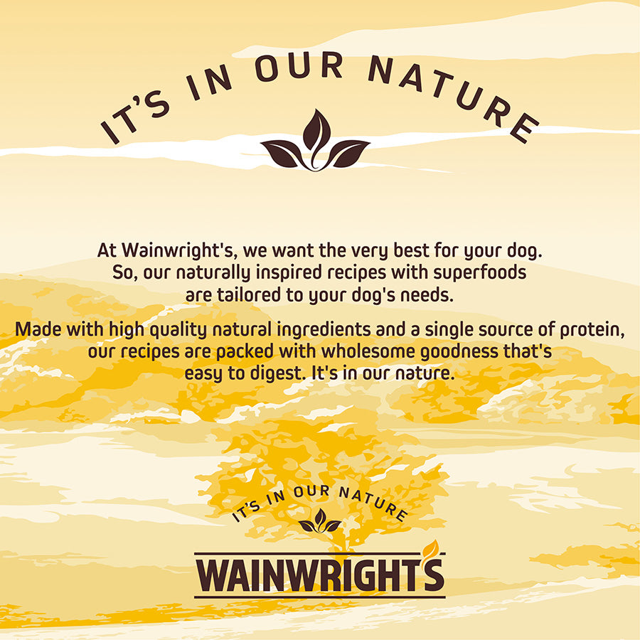 Wainwright's want the very best for your dog. So, their naturally inspired recipes are tailored to your dog's needs. Made with high-quality ingredients and a single source of protein, their recipes are packed with wholesome goodness that's easy to digest. It's in their nature.