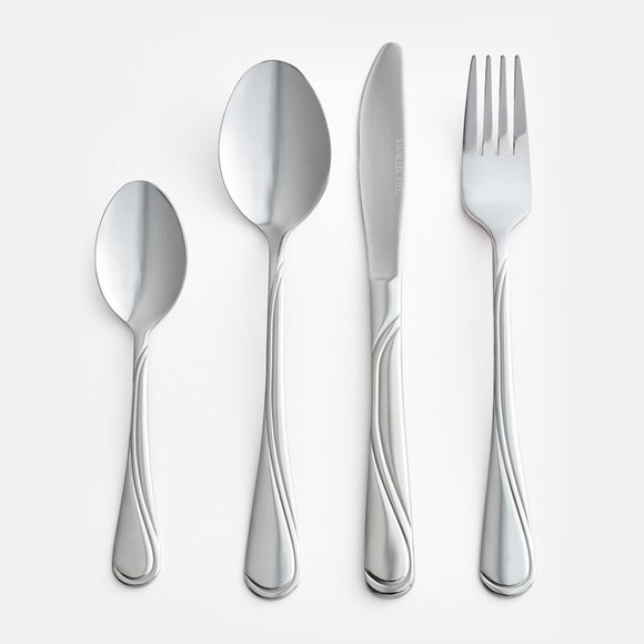 This 16 piece cutlery set from the Waves collection is perfect for everyday dining and can easily be cleaned as it's dishwasher safe. Complete with four forks, four knives, four tablespoons and four teaspoons - it's everything you need to update your tableware and features a curving wave design - perfect for a coastal scheme.