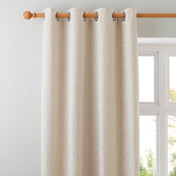 Made with an eyelet header for easy installation and a smooth motion along your curtain pole, this pair of patterned curtains feature a trailing leaf design in a bright ivory tone, fully lined and available in a choice of sizes.