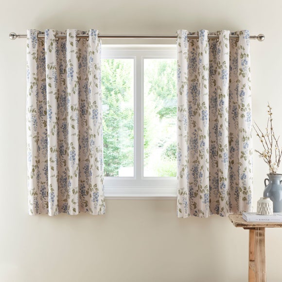 Gorgeous floral patterns elegantly adorn these curtain panels. The front panel is delicately lined with a polycotton striped print, ensuring the preservation of the design and fabric from fading, thus ensuring their durability. Finished with a sleek eyelet header, these curtains are crafted for effortless use with a curtain pole. For a stylish room ensemble, pair these curtains with the matching cushion.