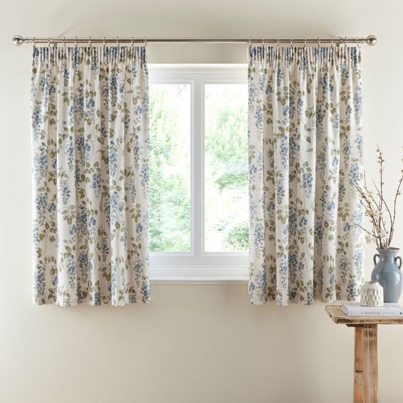 Create a captivating ambience with the Wisteria Pencil Pleat Curtains. This set includes two curtain panels, each featuring a stunning floral print design; the beautiful florals cascade gracefully across the face of these curtains, adding a touch of natural elegance to your space.